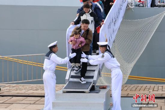 4月22日,人民海軍成立77周年北部戰(zhàn)區(qū)海軍艦艇開放活動在山東青島拉開序幕,吸引大量民眾登艦參觀。4月23日是人民海軍成立77周年紀(jì)念日,海軍于23日前后在中國十多個城市舉行軍營開放活動,四十多艘現(xiàn)役艦艇將與公眾見面。本次活動,北部戰(zhàn)區(qū)海軍在青島的兩個碼頭開放6艘艦艇,將持續(xù)至4月26日。圖為官兵幫助民眾離艦。張孝鵬 攝