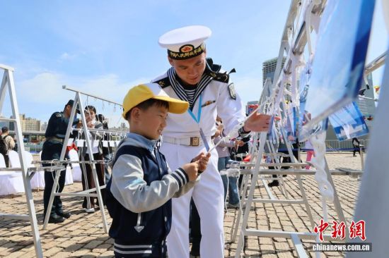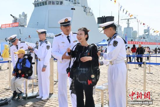4月22日,人民海軍成立77周年北部戰(zhàn)區(qū)海軍艦艇開放活動在山東青島拉開序幕,吸引大量民眾登艦參觀。4月23日是人民海軍成立77周年紀(jì)念日,海軍于23日前后在中國十多個城市舉行軍營開放活動,四十多艘現(xiàn)役艦艇將與公眾見面。本次活動,北部戰(zhàn)區(qū)海軍在青島的兩個碼頭開放6艘艦艇,將持續(xù)至4月26日。圖為民眾與官兵合影。張孝鵬 攝
