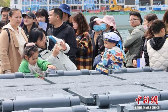 4月22日,人民海軍成立77周年北部戰(zhàn)區(qū)海軍艦艇開放活動在山東青島拉開序幕,吸引大量民眾登艦參觀。4月23日是人民海軍成立77周年紀(jì)念日,海軍于23日前后在中國十多個城市舉行軍營開放活動,四十多艘現(xiàn)役艦艇將與公眾見面。本次活動,北部戰(zhàn)區(qū)海軍在青島的兩個碼頭開放6艘艦艇,將持續(xù)至4月26日。圖為活動吸引大量民眾。張孝鵬 攝
