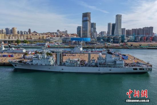 4月22日,人民海軍成立77周年北部戰(zhàn)區(qū)海軍艦艇開放活動在山東青島拉開序幕,吸引大量民眾登艦參觀。4月23日是人民海軍成立77周年紀(jì)念日,海軍于23日前后在中國十多個城市舉行軍營開放活動,四十多艘現(xiàn)役艦艇將與公眾見面。本次活動,北部戰(zhàn)區(qū)海軍在青島的兩個碼頭開放6艘艦艇,將持續(xù)至4月26日。圖為東平湖艦在青島向民眾開放。(無人機照片)周遠(yuǎn)志 攝