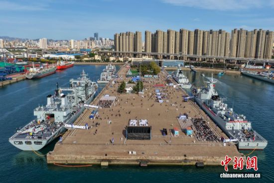 4月22日,人民海軍成立77周年北部戰(zhàn)區(qū)海軍艦艇開放活動在山東青島拉開序幕,吸引大量民眾登艦參觀。4月23日是人民海軍成立77周年紀(jì)念日,海軍于23日前后在中國十多個城市舉行軍營開放活動,四十多艘現(xiàn)役艦艇將與公眾見面。本次活動,北部戰(zhàn)區(qū)海軍在青島的兩個碼頭開放6艘艦艇,將持續(xù)至4月26日。圖為航拍青島港三碼頭活動現(xiàn)場。(無人機照片)周遠(yuǎn)志 攝