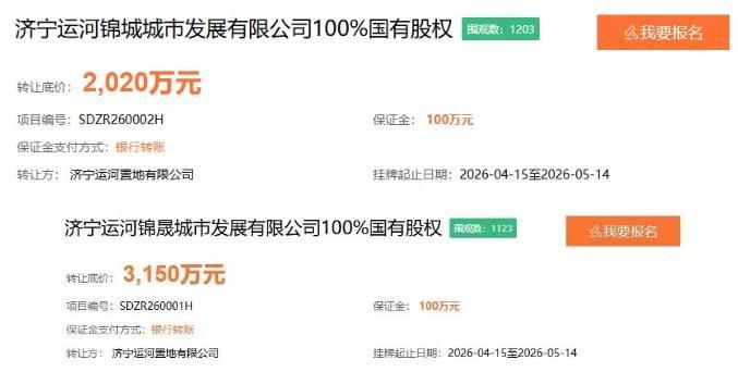 三個(gè)月前,兩家企業(yè)的股權(quán)已經(jīng)掛牌轉(zhuǎn)讓過一次未能成功,本次轉(zhuǎn)讓底價(jià)沒有變化。轉(zhuǎn)讓底價(jià)分別為濟(jì)寧運(yùn)河錦城城市發(fā)展有限公司2020萬(wàn)元,濟(jì)寧運(yùn)河錦晟城市發(fā)展有限公司3150萬(wàn)元。