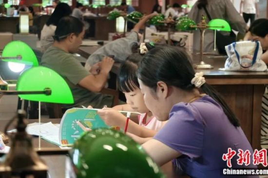 2025年10月5日,一名女孩在家長(zhǎng)的陪同下來(lái)到江西省南昌市豫章書院安靜學(xué)習(xí)。中新社記者 劉占昆 攝