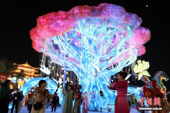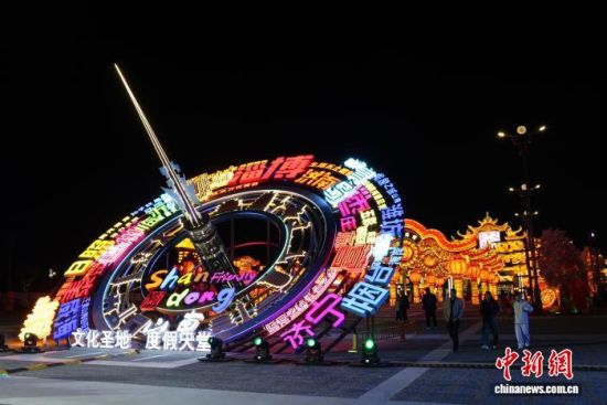 4月23日晚,淄博花燈齊彩城大型燈組絢爛多彩,NPC與游客歡樂互動。該景區(qū)擁有大型花燈88組,融入NPC互動、非遺打鐵花等演藝項目,配套文創(chuàng)市集消費場景,打造沉浸式文旅體驗。當(dāng)晚,2026年山東省文旅產(chǎn)業(yè)高質(zhì)量發(fā)展大會開幕,邀請與會嘉賓觀摩考察重點文旅項目。趙曉 攝