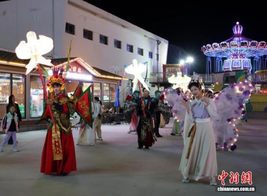 4月23日晚,NPC在淄博花燈齊彩城與游客互動。該景區(qū)擁有大型花燈88組,融入NPC互動、非遺打鐵花等演藝項目,配套文創(chuàng)市集消費場景,打造沉浸式文旅體驗。當(dāng)晚,2026年山東省文旅產(chǎn)業(yè)高質(zhì)量發(fā)展大會開幕,邀請與會嘉賓觀摩考察重點文旅項目。趙曉 攝