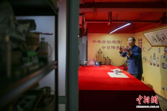 天津市雜技團戲法演員肖桂森在自己的工作室展示傳統(tǒng)中國古彩戲法“三仙歸洞”。中新社記者 佟郁 攝