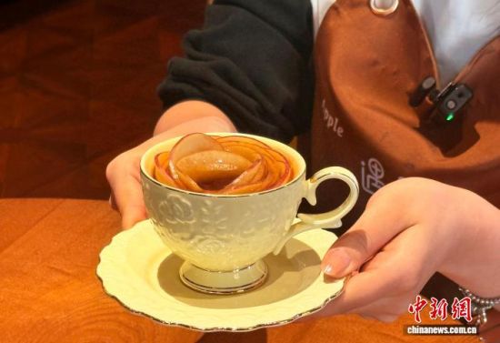 當(dāng)蘋(píng)果與創(chuàng)意相遇,更多可能被激活。在牟氏莊園景區(qū)外的“蘋(píng)果遇見(jiàn)咖啡”店,當(dāng)?shù)胤N植的雪后蘋(píng)果被巧手雕作“玫瑰花”融入紅茶,成為年輕人打卡的焦點(diǎn)。老字號(hào)魯菜館里,一道拔絲蘋(píng)果傳承數(shù)十年,仍是宴席上的甜蜜記憶。更有創(chuàng)意餐廳的廚師以蘋(píng)果木煙熏食材、以發(fā)酵蘋(píng)果汁入饌,為傳統(tǒng)菜肴注入清新之味。