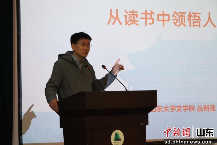 中新網(wǎng)山東新聞4月28日電 4月26日,山東大學(xué)教授叢新強應(yīng)邀做客“萬松浦講堂”,以《從讀書中領(lǐng)悟人文精神》為題,為現(xiàn)場聽眾帶來一場內(nèi)涵深刻、旁征博引的學(xué)術(shù)講座。講座圍繞人文精神的歷史脈絡(luò)、時代價值與現(xiàn)實意義展開,結(jié)合中國現(xiàn)當(dāng)代文學(xué)經(jīng)典,深入闡釋了閱讀與人文素養(yǎng)之間的深層關(guān)聯(lián)。