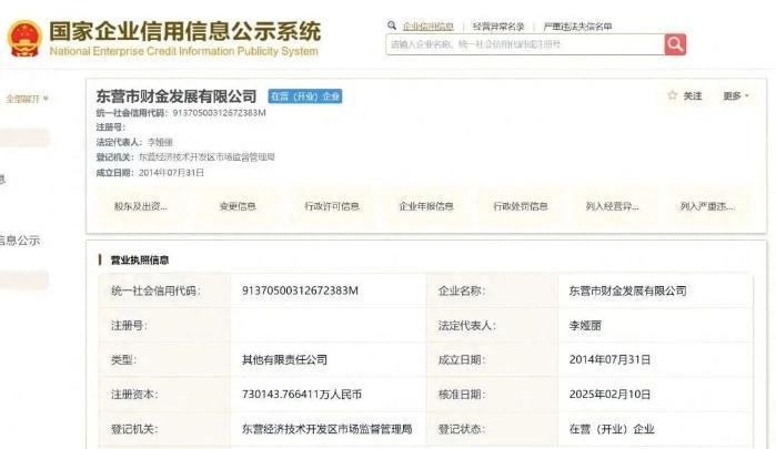 據(jù)國家企業(yè)信用信息公示系統(tǒng)信息,東營財(cái)金發(fā)展成立于2014年,注冊地位于東營市東營區(qū),法定代表人李婭麗,注冊資本730143.77萬元,經(jīng)營范圍包括政府授權(quán)范圍內(nèi)的國有資產(chǎn)運(yùn)營;政府投融資項(xiàng)目管理;城鄉(xiāng)基礎(chǔ)設(shè)施項(xiàng)目投資建設(shè);股權(quán)投資;保障性住房及其他房地產(chǎn)開發(fā)等。