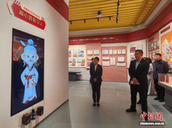 “紅岐館”內(nèi)的AI扁鵲數(shù)字人與觀眾互動(dòng)。趙曉 攝