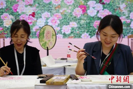 當天,記者在菏澤市巨野縣的牡丹工筆畫展位看到,一名畫工正在宣紙上給牡丹花瓣上色!澳档すすP畫是我們當?shù)氐奶厣F(xiàn)在已經(jīng)形成集繪畫、刻章、裝裱、培訓(xùn)等為一體的產(chǎn)業(yè)鏈!焙蕽墒芯抟翱h書畫院院長程軍偉表示,牡丹工筆畫筆法精湛、色彩絢麗,學起來上手很快。目前,該產(chǎn)業(yè)已帶動1萬余人實現(xiàn)家門口就業(yè)。“希望通過這次博覽會提升牡丹工筆畫的知名度,宣傳牡丹文化!