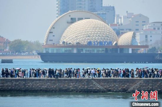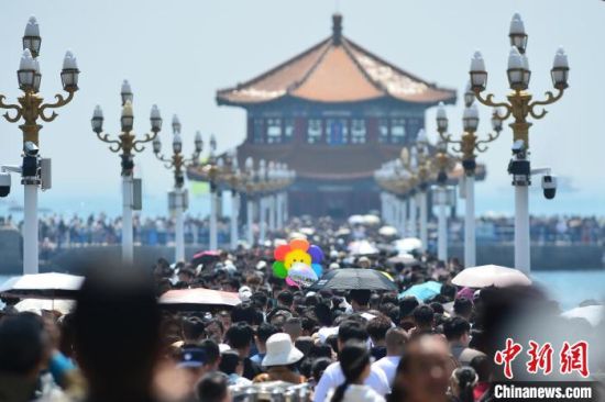 5月1日,“五一”假期第一天,位于青島市市南區(qū)的棧橋景區(qū)人流如織。青島獨(dú)特的海濱美景吸引大批來自全國各地的游客駐足欣賞。游客們紛紛掏出手機(jī),爭相拍照留念。