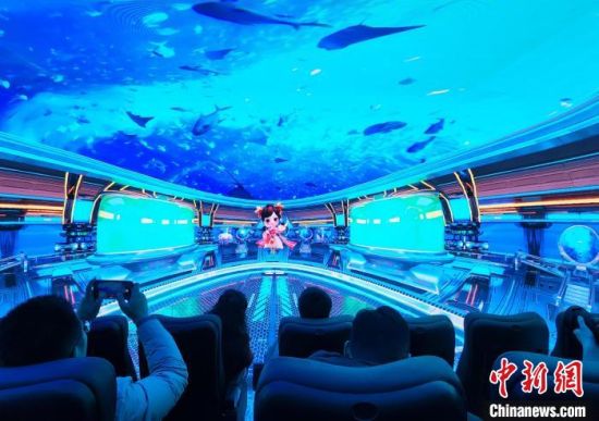 12月31日,山東美術館“上新”數字藝術空間,邀請媒體記者實地探訪。該空間充分運用AI、VR、裸眼3D等數字技術,讓觀眾在沉浸式體驗和互動中收獲視覺盛宴和心靈治愈。圖為媒體記者體驗“海底世界”沉浸式影院!≮w曉