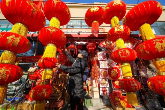 1月11日,人們在山東省青島市李村大集選購新年飾品。張鷹 攝