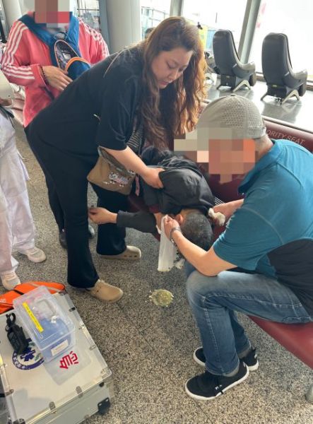 當天,錢金與丈夫剛結束湖南張家界的休假,準備搭乘CZ3937航班返回青島。臨近登機時,人群中突然傳來“咚”的一聲悶響,隨即便是一片驚呼:“有人暈倒了!救命。 卞X金聞聲立即扔下行李,迅速沖到患者身邊。只見一位大叔面色蒼白、意識喪失癱倒在座位上,家屬驚慌失措。