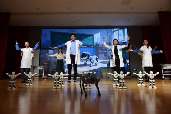 5月28日,老師們在表演校園科創(chuàng)劇“未來實驗室”。王海濱 攝