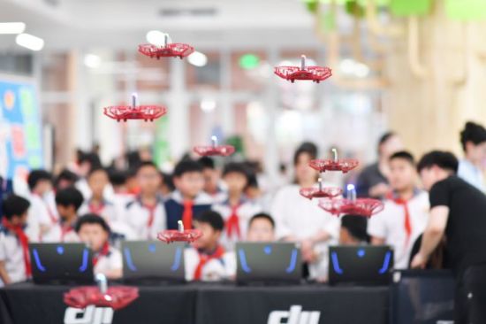5月28日,學生們在觀看無人機表演。王海濱 攝