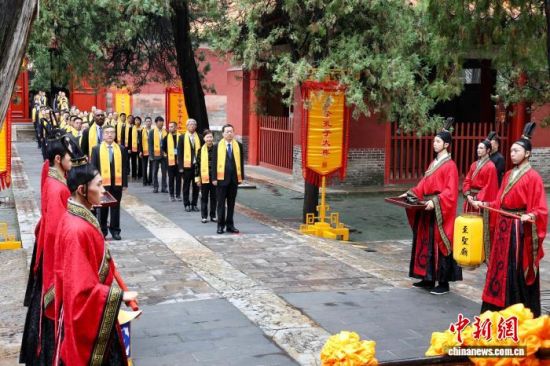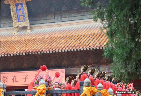 9月28日,乙巳年公祭孔子大典在山東曲阜舉行。各界嘉賓以隆重的釋奠禮拜謁至圣先師孔子。中新社記者 李明芮 攝