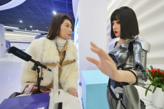 參會(huì)人員與機(jī)器人對(duì)話。王海濱 攝