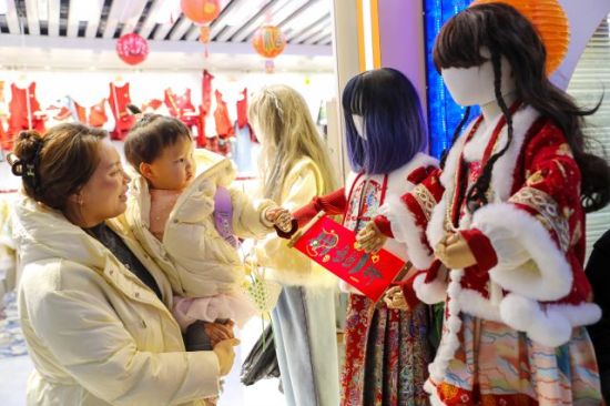 隨著春節(jié)臨近,山東省青島市即墨服裝市場迎來銷售熱潮,蘊(yùn)含傳統(tǒng)韻味與現(xiàn)代設(shè)計(jì)的中式服裝成為市場焦點(diǎn)。眾多消費(fèi)者徜徉其間,選購、試穿著各類做工精良、款式新穎的中式服裝,節(jié)日消費(fèi)活力十足。