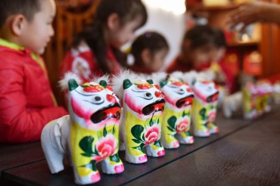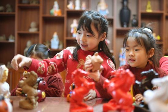 春節(jié)臨近,山東省青島市城陽區(qū)河套街道匯海社區(qū)泥塑非遺工坊開展“非遺傳承迎新春”主題活動,幼兒園小朋友在非遺傳承人的指導下,了解泥塑傳統(tǒng)文化,感受非遺魅力。