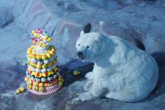 活動(dòng)中,北極熊“歡歡”的定制年夜飯吸引眾多游客駐足。這款高達(dá)一米的花餑餑由膠東非遺傳承人手工制作,以天然蔬果汁著色,頂端精心塑造出“萬馬奔騰”的面塑造型,氣勢(shì)生動(dòng),寓意新的一年奔騰向前、奮進(jìn)不止;其下方則環(huán)繞著企鵝、海豹、海豚、蘋果、福袋、壽桃等造型,既展現(xiàn)地方非遺技藝,也傳遞出濃濃年味與新春祝福,F(xiàn)場(chǎng)游客紛紛舉起手機(jī),記錄下“歡歡”大快朵頤的憨萌姿態(tài),在歡聲笑語(yǔ)中感受“馬上開心”的新春祝福。