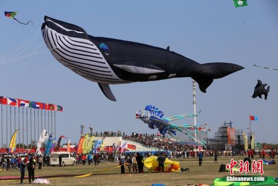 濰坊(古稱濰州和濰縣)風(fēng)箏來源已久,至明代已普及民間,清代乾、嘉年間更加興盛。據(jù)史料記載, 明清時期,風(fēng)箏開始真正地在濰坊民間普及開來。到了民國時期,濰縣政府已經(jīng)開始嘗試舉辦風(fēng)箏會。圖為第38屆濰坊國際風(fēng)箏會,各式風(fēng)箏爭奇斗艷令人目不暇接。圖/視覺中國