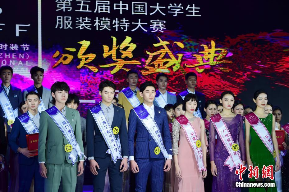 1月2日晚,第五屆中國大學(xué)生服裝模特大賽在廣東省深圳市揭曉,來自全國61所院校的75名大學(xué)生男女選手參賽。經(jīng)過綜合素質(zhì)測評、T臺泳裝展示、晚禮服等環(huán)節(jié)評審,最終評出37號李凌、15號薛以琳、9號張雨、67號石昊川、76號豐孝于、63號張?jiān)骑w分別摘得本屆大賽女子組和男子組金獎。圖為6位金獎獲得者亮相。中新社記者 陳文 攝