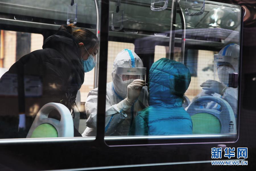 1月7日,醫(yī)護(hù)人員在“核酸采樣流動(dòng)車(chē)”內(nèi)為市民進(jìn)行核酸采樣。 為配合做好疫情防控保障工作,自1月6日起,石家莊市公交總公司提供了36輛公交車(chē)作為“核酸采樣流動(dòng)車(chē)”,分別承擔(dān)長(zhǎng)安區(qū)、裕華區(qū)等地的核酸檢測(cè)服務(wù)工作。 新華社發(fā)(鄭榮璽 攝) 圖片來(lái)源:新華網(wǎng)