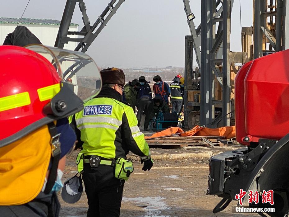 1月12日,山東棲霞笏山金礦爆炸事故救援指揮部12日中午召開新聞發(fā)布會(huì)通報(bào),救援正在緊張開展,目前主要任務(wù)是把爆炸產(chǎn)生的有毒氣體排到地表。據(jù)悉1月10日下午2時(shí),位于棲霞市西城鎮(zhèn)正在建設(shè)的五彩龍金礦發(fā)生爆炸事故,沖擊波將井通梯子間損壞,罐籠無(wú)法正常運(yùn)行。事故發(fā)生時(shí),井下有22名工人被困,因通訊信號(hào)系統(tǒng)損壞,目前尚未取得聯(lián)系。圖為救援現(xiàn)場(chǎng)。 中新社記者 楊兵 攝