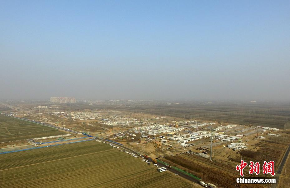 1月16日,石家莊黃莊公寓隔離點項目工地上,工人們正在加緊進行施工作業(yè)。日前,石家莊市開始建設用于安置新冠肺炎密切接觸者和次密切接觸者等人員的集中隔離點。據(jù)了解,黃莊公寓隔離點項目于1月13日開工,選址在正定縣與藁城區(qū)交界處,占地面積510畝,總建筑面積6.9萬平方米。圖為航拍黃莊公寓隔離點施工現(xiàn)場。中新社記者 諶詩雨 攝