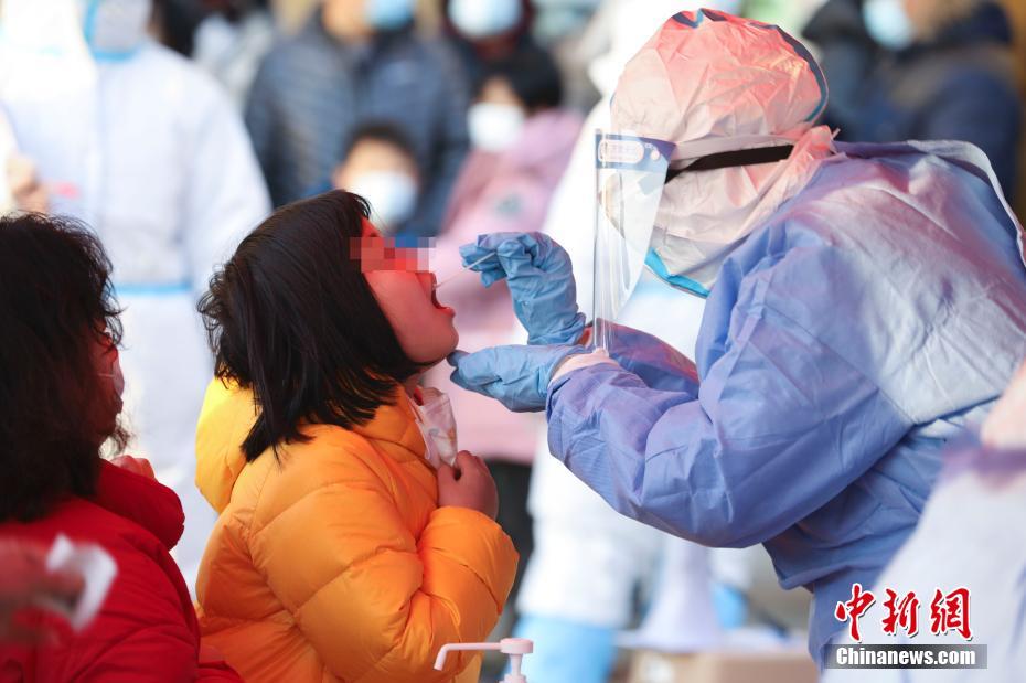 1月18日,北京大興區(qū)啟動(dòng)天宮院街道及周邊5個(gè)街道、2個(gè)基地的全員核酸檢測(cè)工作,預(yù)計(jì)檢測(cè)52.2萬人。1月17日0時(shí)至24時(shí),北京新增2例本地確診病例,均住大興區(qū)天宮院街道。圖為大興區(qū)高米店街道的一處采樣點(diǎn),工作人員對(duì)居民進(jìn)行核酸檢測(cè)采樣。中新社記者 趙雋 攝