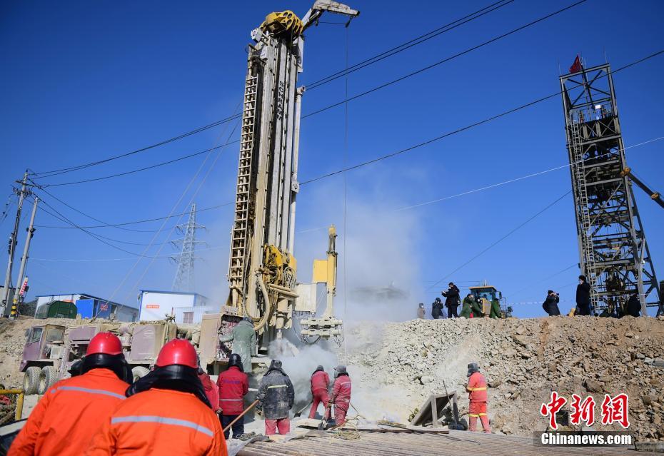 當(dāng)?shù)貢r間1月19日,山東棲霞笏山金礦事故救援工作持續(xù)進(jìn)行。自1月17日與井下部分受困人員取得聯(lián)系后,源源不斷的補(bǔ)給運(yùn)往棲霞笏山金礦井下,井下人員的體力正在恢復(fù)。中新社記者 楊兵 攝