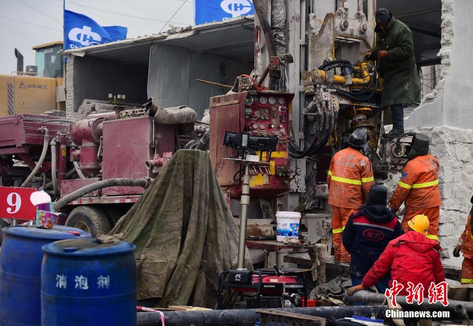 1月20日,山東棲霞笏山金礦事故救援工作持續(xù)進(jìn)行。自1月17日與井下部分受困人員取得聯(lián)系后,被困工人接連傳上消息,目前處于五中段的11名礦工中,8人身體狀況穩(wěn)定,2人身體較虛弱,1人因受爆炸沖擊深度昏迷,救治組正全力協(xié)調(diào)救治。中新社記者 楊兵 攝