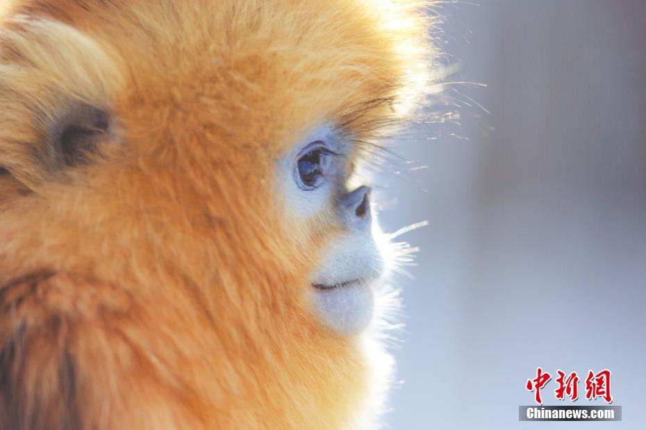 湖北神農(nóng)架:雪中金絲猴萌態(tài)十足惹人愛(2)