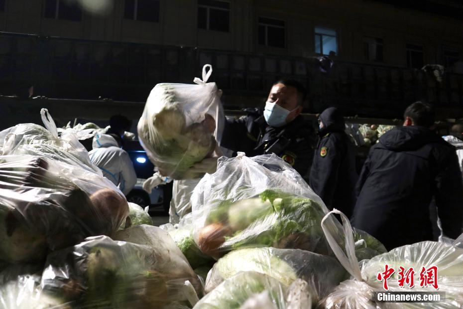 1月25日午夜,吉林省通化市,防疫人員為隔離居民運(yùn)送生活物資。截至1月25日24時,本次疫情通化市現(xiàn)有確診病例202例,無癥狀感染者58例。中新社記者 蒼雁 攝