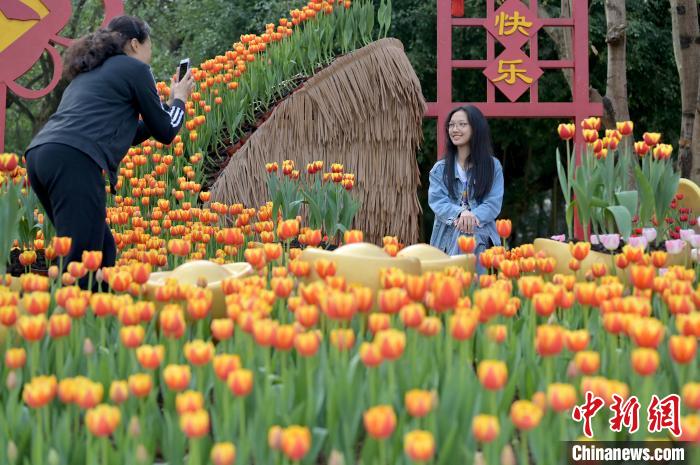 廣西南寧:近40萬株郁金香盛放引游人(3)