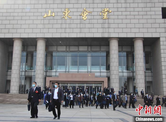 圖為山東省人大代表、政協(xié)委員會(huì)后走出山東會(huì)堂。 趙曉 攝