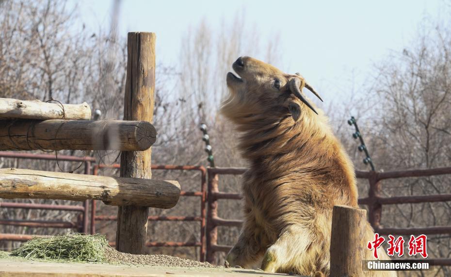 2月6日,山東濟南,金毛羚!芭鉀_天”吃大餐。春節(jié)臨近,濟南野生動物世界的工作人員開始為動物們置辦“年飯大餐”。中新社記者 張勇 攝