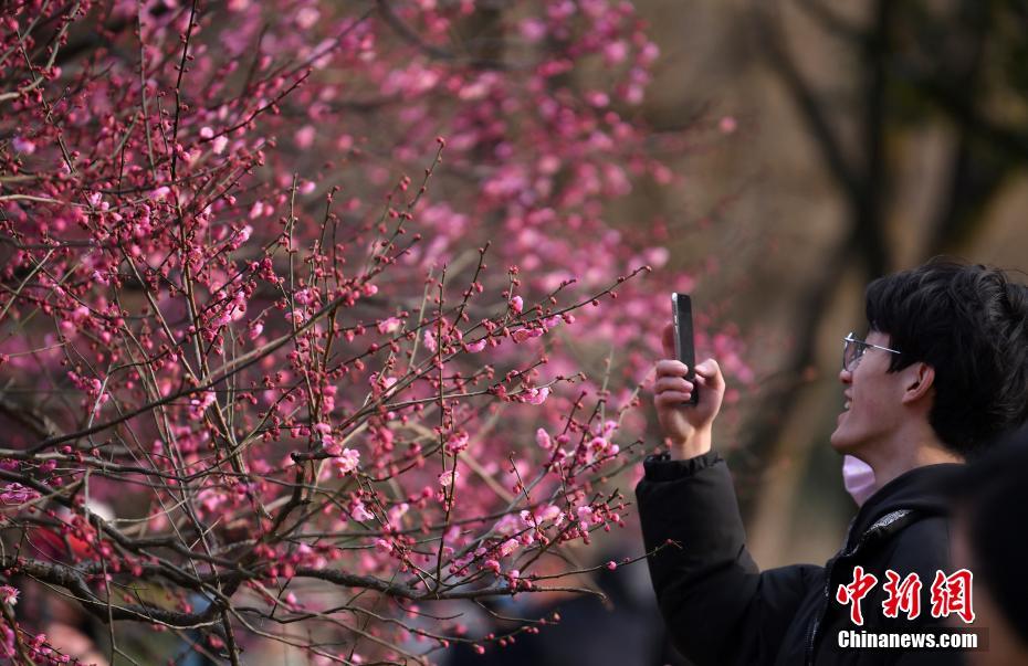 2月9日,浙江杭州,盛開的梅花吸引了眾多游人前往觀賞。立春時(shí)節(jié),杭州西湖邊孤山的梅花相繼盛開,品種有紅梅、白梅、青梅等,觀賞效果極佳,吸引眾多市民和游客前來尋梅探春。中新社記者 張茵 攝