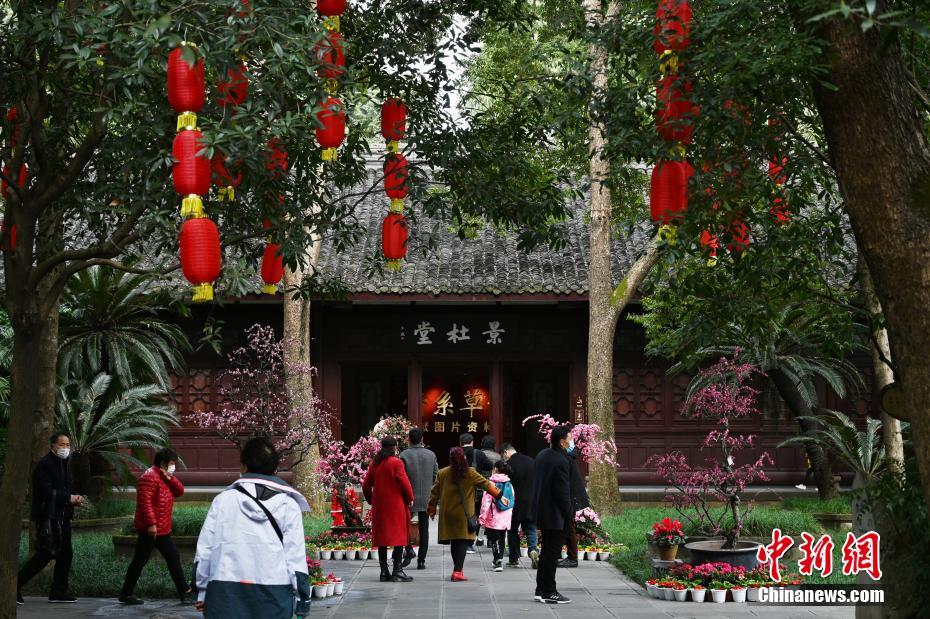 2月13日,農(nóng)歷大年初二,成都市民在杜甫草堂游玩。 中新社記者 安源 攝