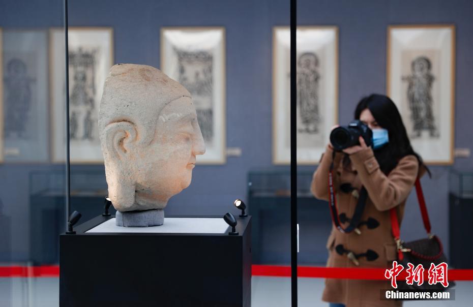 2月12日,“咸同斯!忑埳绞邍(guó)寶回歸暨數(shù)字復(fù)原特展”在北京魯迅博物館開(kāi)展。圖為天龍山石窟第8窟北壁主尊佛首(隋代)。此尊被盜佛首于1924年前后被盜鑿并非法盜運(yùn)出境,2020年10月31日,由日籍華僑張榮無(wú)償捐獻(xiàn)給中國(guó)國(guó)家文物局,12月12日12時(shí),佛首安全運(yùn)抵北京,重回祖國(guó)懷抱。中新社記者 杜洋 攝