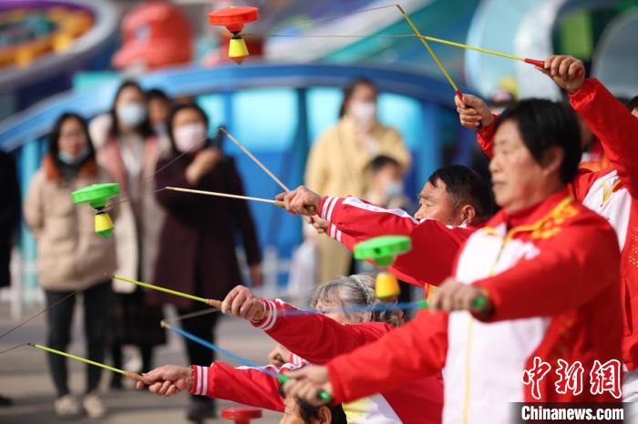 大爺大媽抖空竹水平高!°蟛 攝