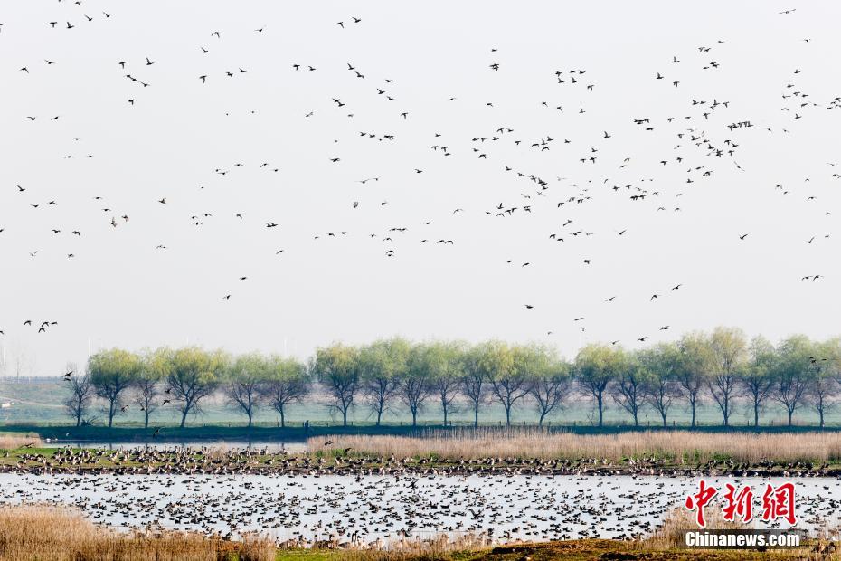 2月21日,武漢府河濕地觀鳥區(qū)候鳥云集,風(fēng)景美麗。武漢府河濕地保護(hù)區(qū)水資源豐富,生態(tài)良好,生物多樣性豐富,每年都會(huì)吸引數(shù)萬只來自中國(guó)東北或西伯利亞的候鳥在此停歇越冬。中新社記者 張暢 攝