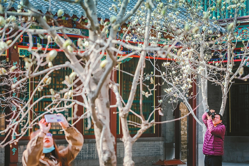 趵突泉公園內(nèi)的白雪樓是明代詩(shī)人李攀龍的藏書(shū)之處,“地敞中原秋色盡,天開(kāi)萬(wàn)里夕陽(yáng)空”就是李攀龍有名的詩(shī)句。每年的春天,白雪樓和白玉蘭之間都會(huì)上演一場(chǎng)對(duì)話(huà),那是建筑與花之間獨(dú)有的默契。趵突泉泉眼就在白雪樓的北鄰,所以,賞花賞泉,一個(gè)城市最濃郁的春天氣息就“一站集齊”了。新時(shí)報(bào)記者黃中明