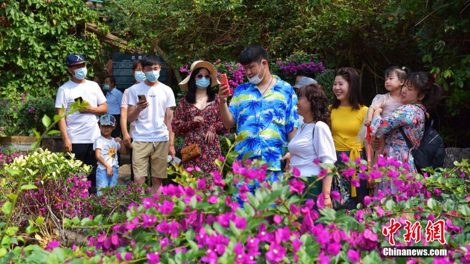 驚蟄臨近三亞百花爭(zhēng)艷 游客樂(lè)享盎然春意(5)