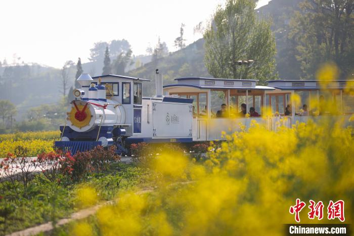 金海雪山景區(qū)內(nèi)的小火車吸引游客乘坐觀景!■暮陚 攝