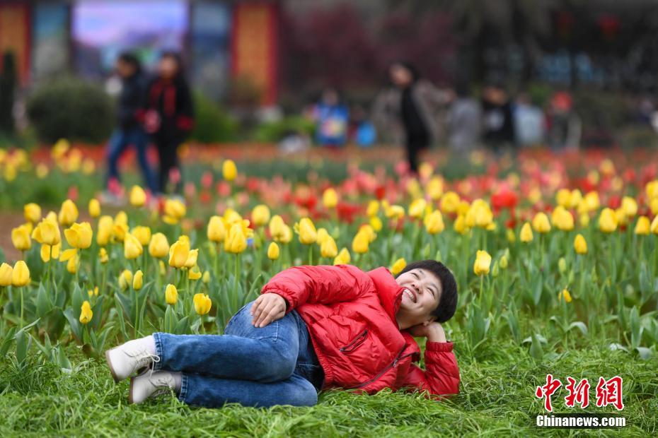3月23日,游人在“花!敝信恼樟裟。當(dāng)日,湖南省森林植物園“花!敝械挠艚鹣銧(zhēng)相綻放,吸引了眾多游人前來(lái)觀賞。中新社記者 楊華峰 攝