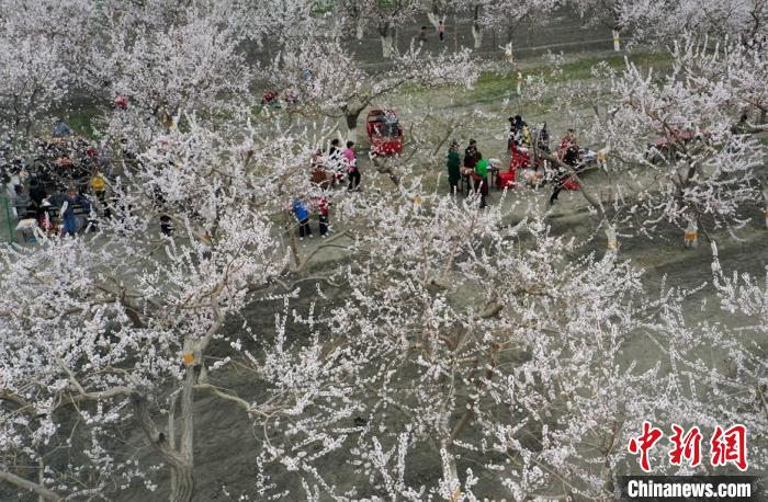 新疆塔里木盆地邊緣萬(wàn)畝杏花盛開(kāi) 嬌艷芬芳“醉”游人(7)