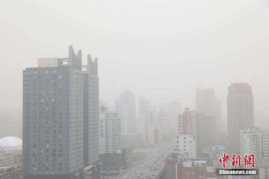 3月29日,河南遭遇大風(fēng)、沙塵天氣,大部分區(qū)域出現(xiàn)浮塵揚(yáng)沙重度及以上污染過程。圖為籠罩在沙塵中的鄭州城區(qū)。中新社記者 闞力 攝
